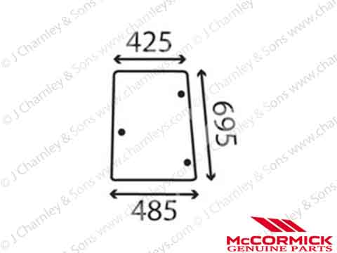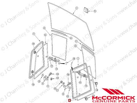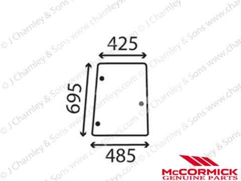 192001A3 LH SIDE WINDOW GLASS. Genuine McCormick left hand side opening rear window glass for McCormick tractors fitted with the 6 post cab.