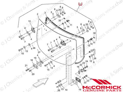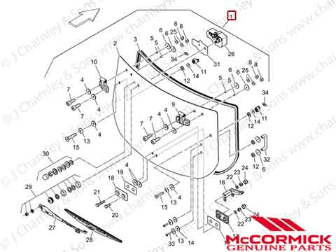 6524005M91 REAR WINDOW GAS STRUT. Genuine McCormick rear window gas strut for McCormick X4 , X5 and X6 series tractors.